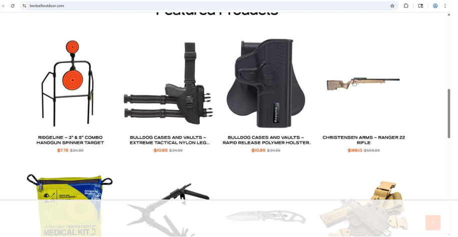 Bestselloutdoor.com presents itself as an online retailer offering outdoor products at discounted prices. However, reports and expert analysis suggest otherwise.