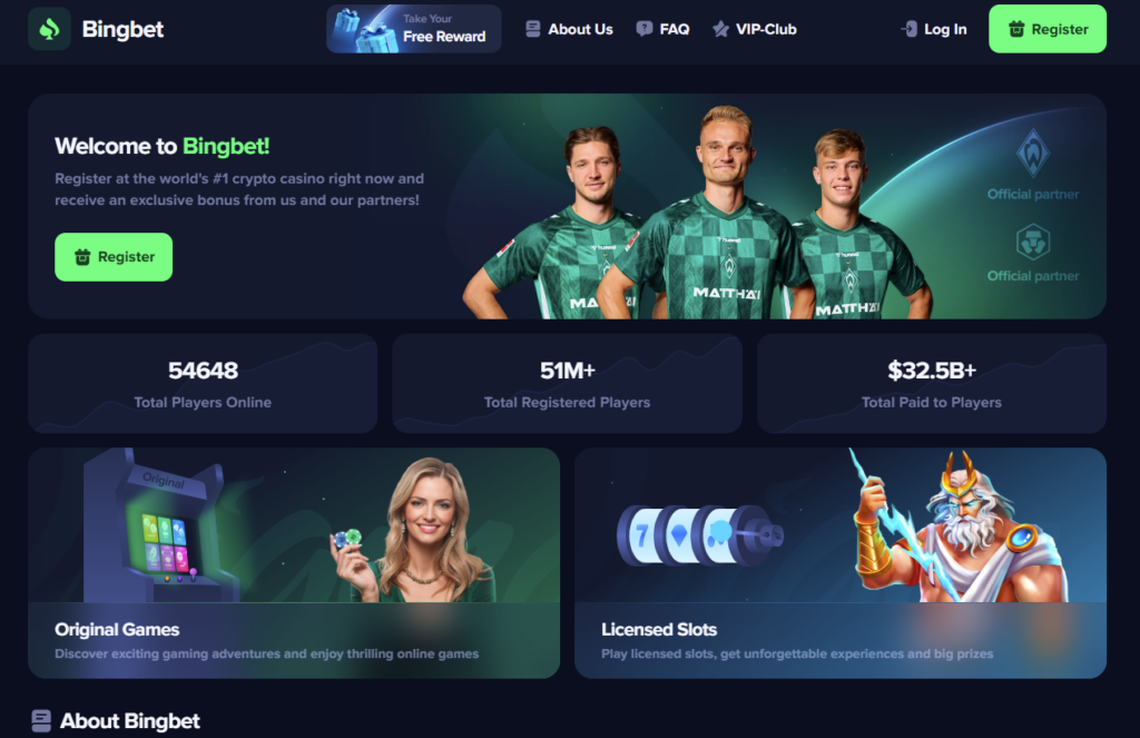 Bingbet.win claims to be an online betting and casino platform that allows users to gamble using cryptocurrency and digital payment systems.