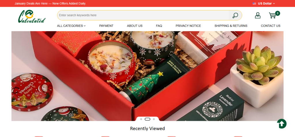 Calculatedcart.com presents itself as an online retail platform offering various consumer products. However, the website provides very limited information about its business operations, company background, or ownership details.