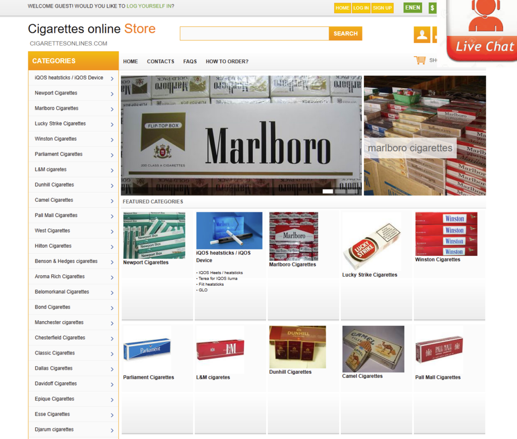 Cigarettesonlines.com is an eCommerce platform that sells cigarette brands online, often at lower prices than retail outlets. The site claims to serve international customers and deliver directly to buyers.