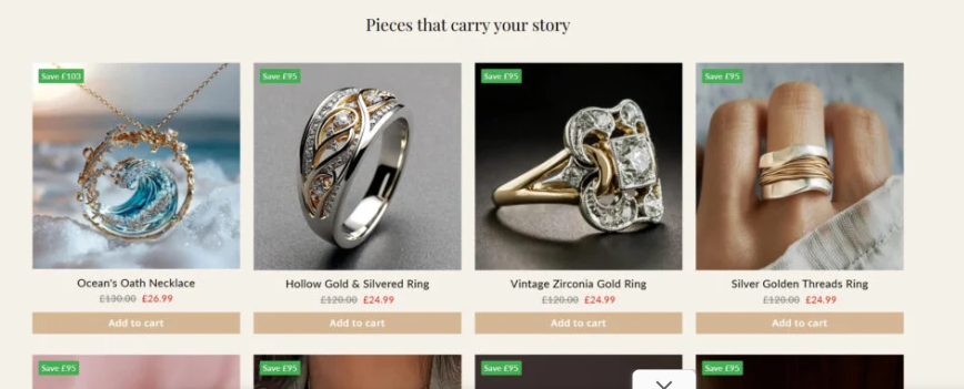 Claire & Arlo is an online jewellery store that presents itself as a boutique brand offering elegant and sentimental pieces — often promoted with emotional copy like “pieces that carry your story”. The website displays rings, bracelets, necklaces, and earrings with large discounts and claims of premium quality at low prices.