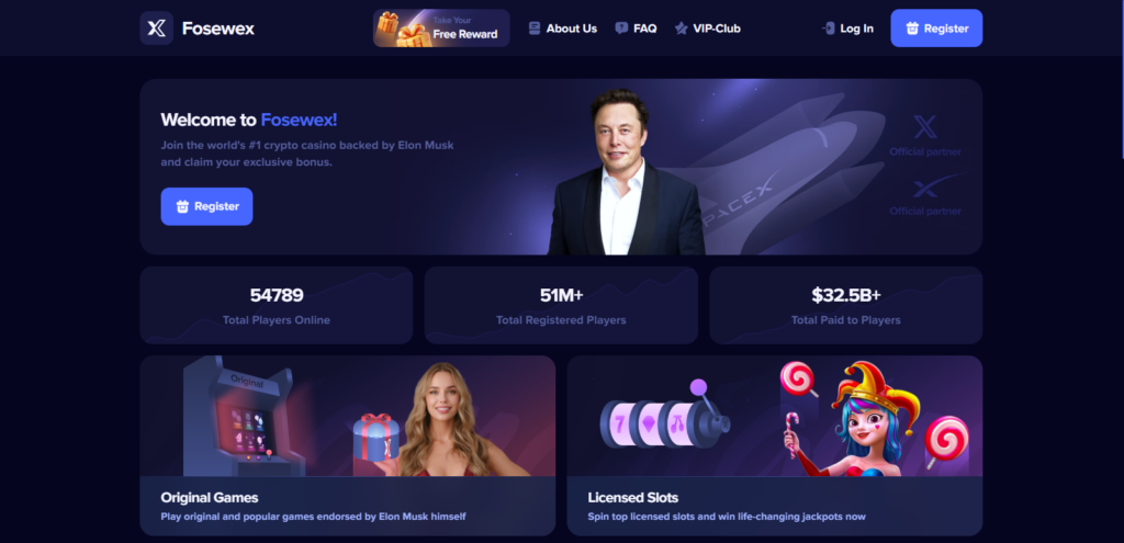 Fosewex.com claims to be an online cryptocurrency gaming and casino platform. According to its marketing content, users can supposedly: