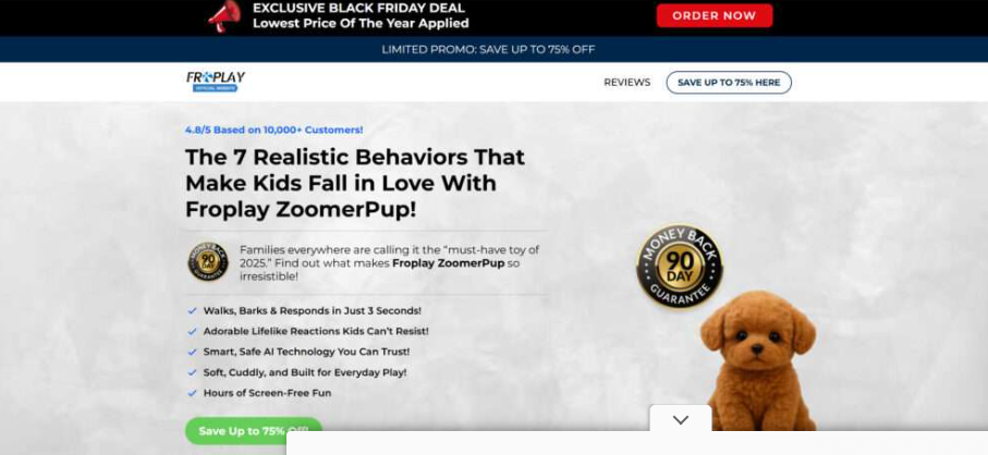 If you’ve been scrolling through social media or YouTube lately, you’ve probably seen ads for the Froplay Toy Dog, also known as the ZoomerPup. These slick, emotional videos promise a lifelike robotic puppy that walks, wags its tail, barks, and “learns” from you, all without needing Wi-Fi. It sounds magical — but many experts, review sites, and real buyers are calling it a scam. In this in-depth Froplay review, we’ll examine the evidence, break down the marketing claims, and compare it to truly legitimate interactive robot dogs.