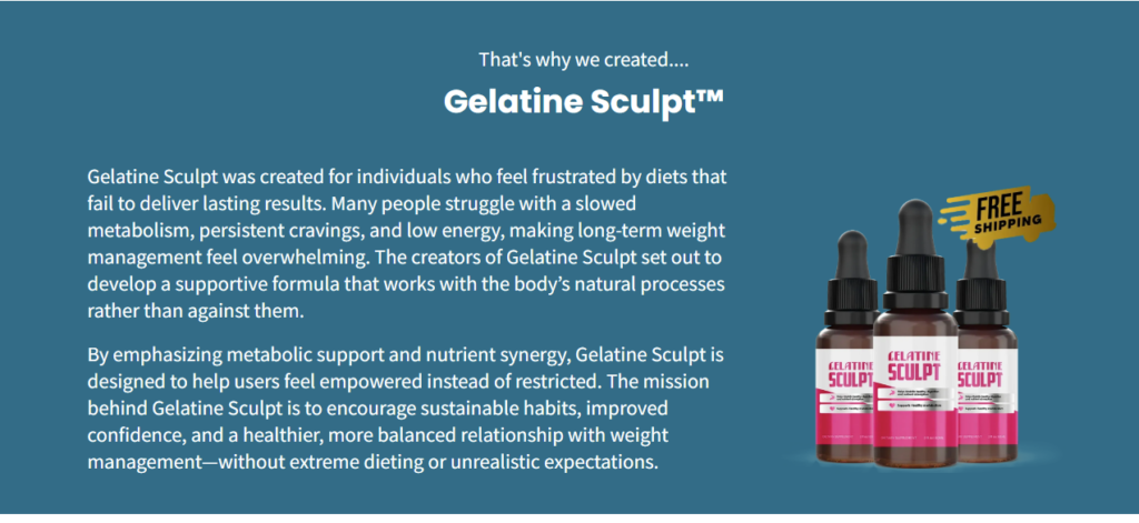 Gelatine Sculpt Drops are marketed as a liquid dietary supplement designed to promote fat burning, suppress appetite, and support metabolism. The product is mainly promoted through social media advertisements and sales funnels that promise dramatic weight loss results.