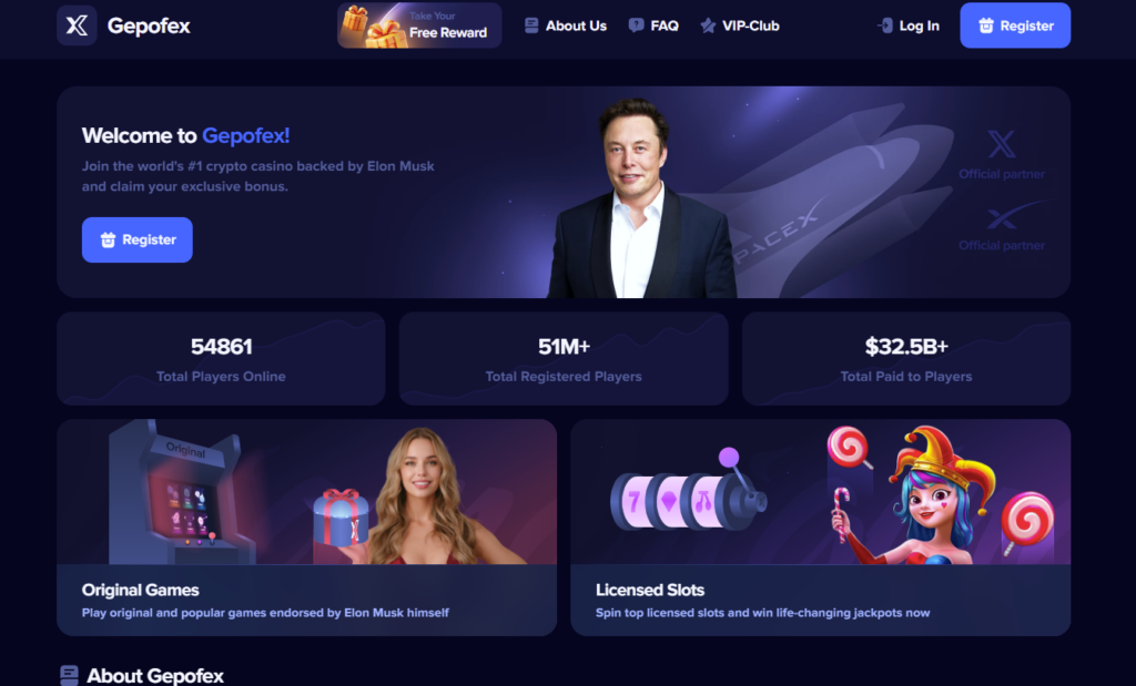 Gepofex is positioned as an online crypto betting platform. It promotes high-value signup bonuses and claims users can earn quickly through gaming activities. Platforms in this niche are often high risk, especially when transparency and regulation are unclear.