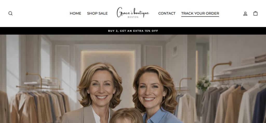 Grace’s Boutique Boston Clothing Sale is an online promotion advertising large discounts on women’s clothing. The sale often claims to be a boutique clearance or closing sale with significant price reductions.