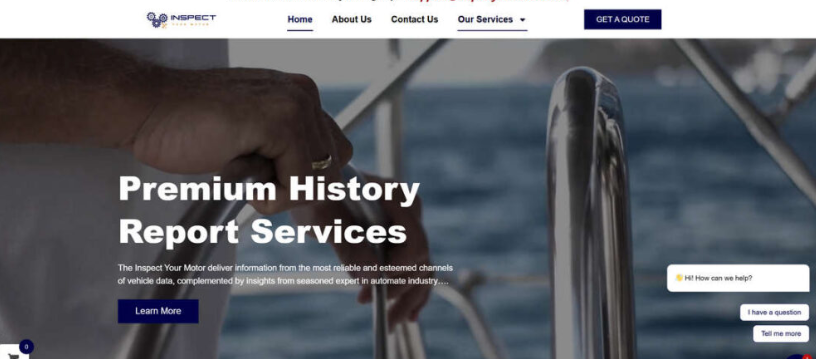 InspectYourMotor.com presents itself as a provider of vehicle history reports for cars, motorcycles, boats, and RVs. The platform claims to offer information such as accident records, title checks, mileage verification, and ownership history.