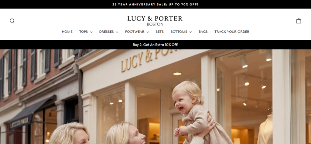 The brand’s homepage states the business was built as a small family boutique, with the next generation carrying on the legacy. It lists several bestselling items and includes positive customer testimonials. (lucyandporter.com)