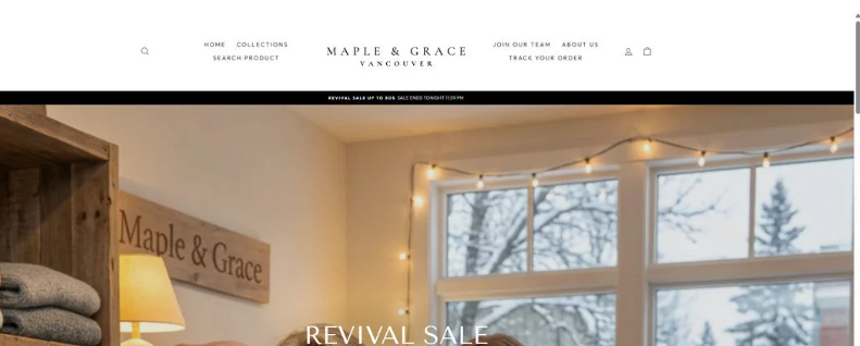 Maple‑Grace.com is an e‑commerce site that claims to sell women’s fashion and accessories, presenting itself as a boutique based in Vancouver, Canada.