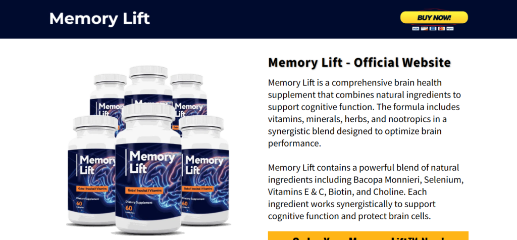 Memory Lift is marketed as a cognitive support supplement designed to improve memory, focus, and mental clarity. While some users report positive experiences, independent scientific evidence supporting strong memory enhancement appears limited.