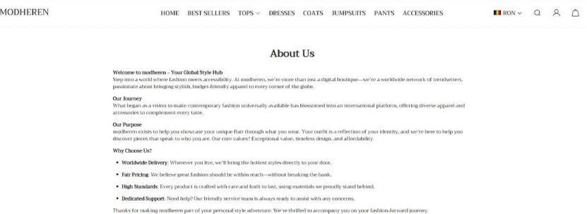 One of the biggest warning signs is the absence of verified contact details. Research indicates that Modheren.com does not provide a clear business address or phone number, which is unusual for legitimate online stores.