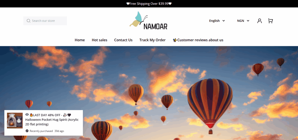 Products on Namoar.com are often priced 50–80% lower than similar listings on verified platforms like Amazon or Walmart. While discounts are normal in e-commerce, persistent deep cuts on all products, especially new arrivals, are a hallmark of scam sites.