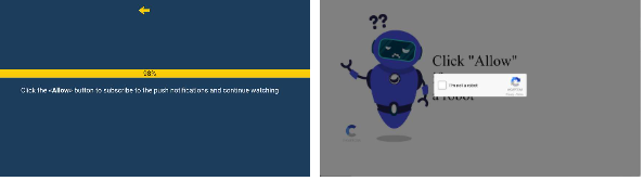 Some pages claim users must allow notifications to watch videos, download files, or continue browsing.