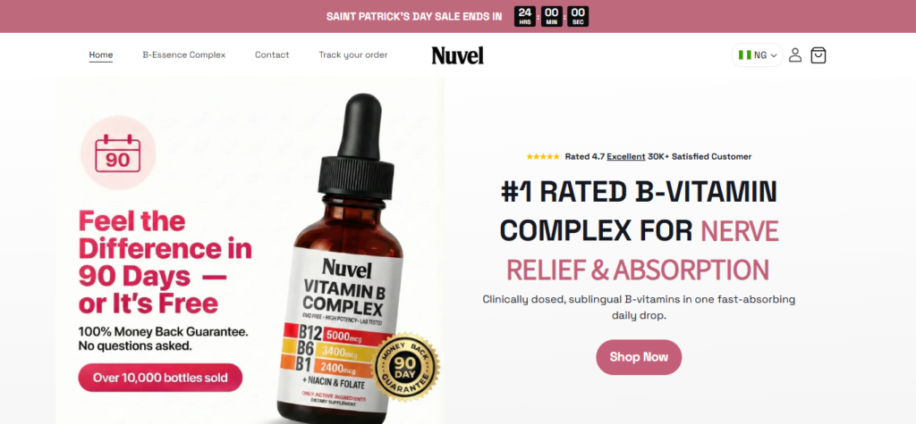 Nuvel’s FAQ claims many users see improvements in nerve discomfort and sleep quality within 2–8 weeks of consistent use.