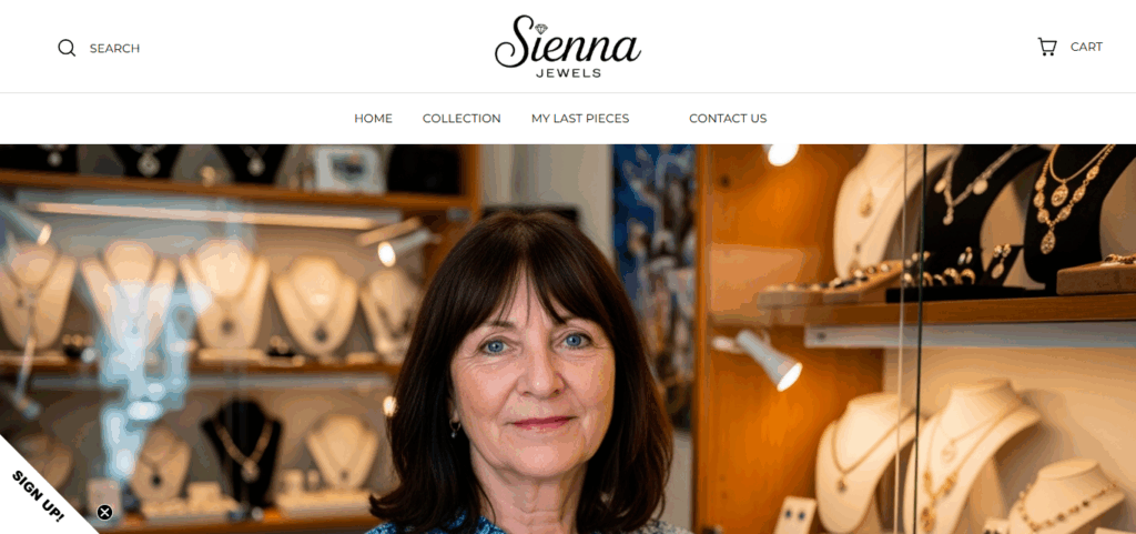 Siennajewels.com presents itself as an online jewelry boutique selling stylish rings, necklaces, bracelets, and earrings. The website’s homepage features “massive clearance sales” and “limited-time discounts,” which immediately capture attention.