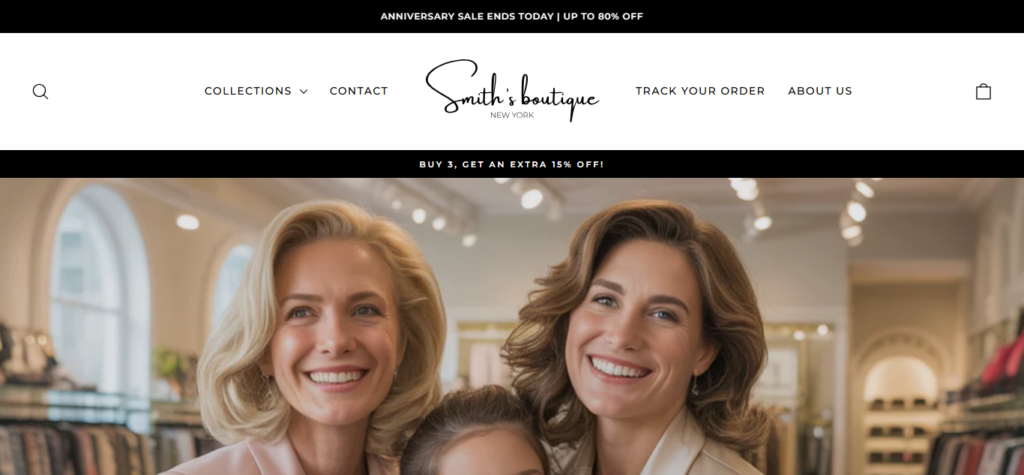 SmithsBoutiqueNewYork.com claims to be an online fashion boutique offering stylish clothes and accessories at deep discounts. The site appears designed for shoppers looking for deals, but outward branding can be misleading. Independent checks raise serious concerns about the site’s legitimacy.