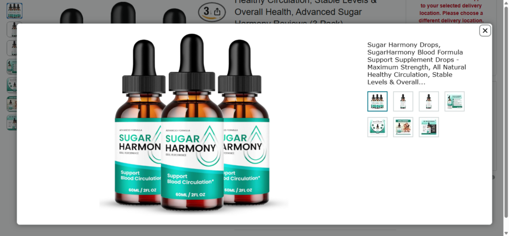 Sugar Harmony Drops is marketed as a liquid blood sugar support supplement designed to help regulate glucose levels, reduce sugar cravings, and improve metabolic health. The product is primarily sold online through promotional landing pages and third-party websites.