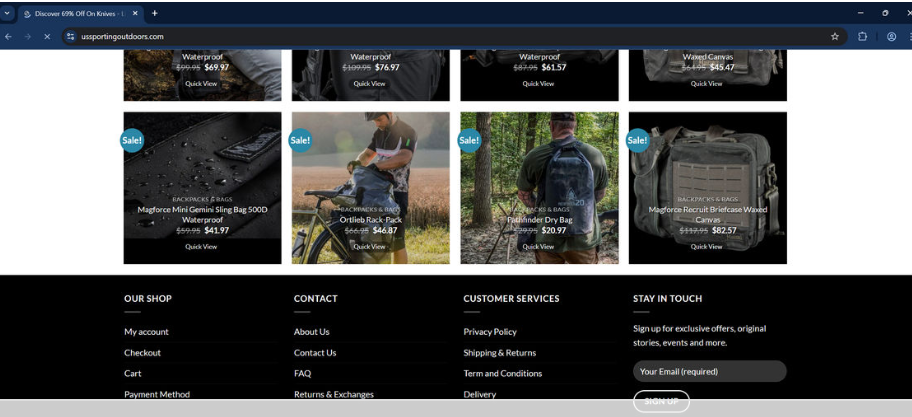 Ussportingoutdoors.com presents itself as an online sporting goods retailer offering discounted products such as camping equipment, hunting gear, fishing tools, and other outdoor essentials. However, based on multiple scam reports and independent investigations, the site is not legitimate.