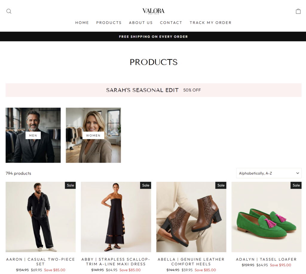 When examined closely, Valora New York follows a common online fashion dropshipping structure. This model is widely used across fast fashion websites that rely on social media ads.