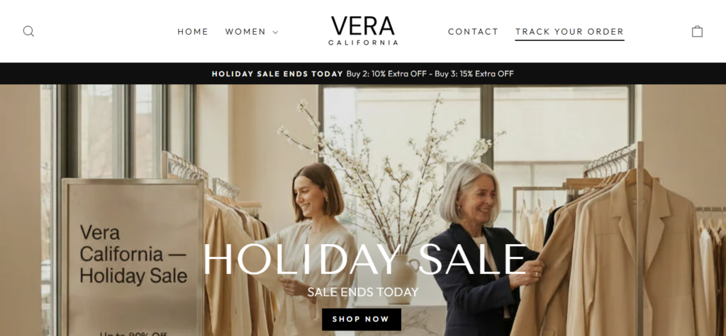 Veracalifornia.com positions itself as an online fashion retailer selling clothing and accessories at discounted prices. The site promotes seasonal deals, free shipping for U.S. orders, and a 30-day money-back guarantee. Despite these promises, several important signals suggest caution is warranted.