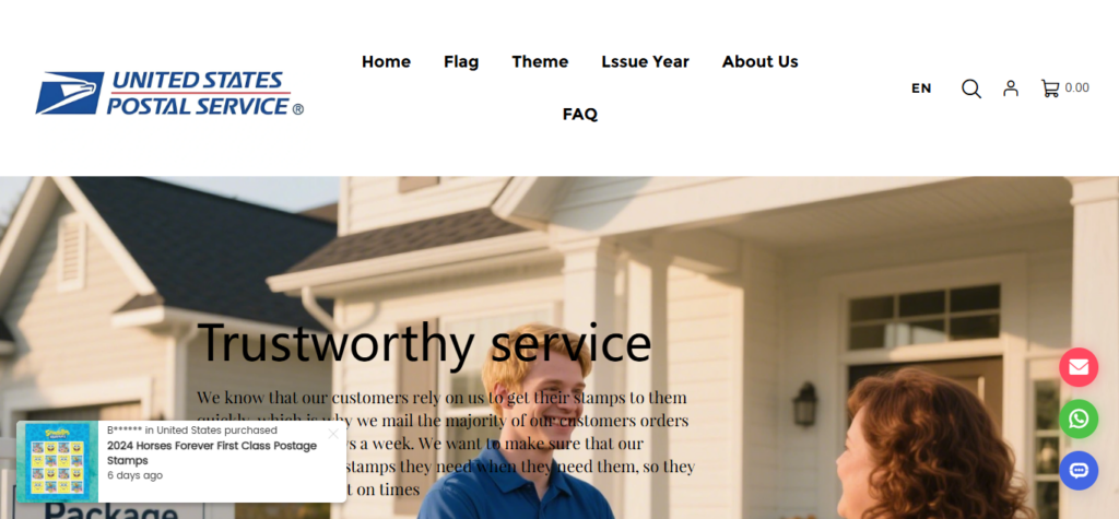 Whatuses.com is an online shopping website that appears to sell discounted products — particularly items like USPS postage stamps and related accessories. The site advertises significant savings compared with standard retail prices, which can be attractive but may also signal risk for online shoppers.